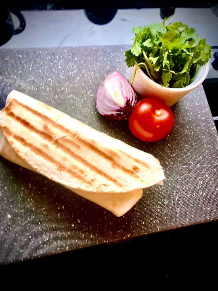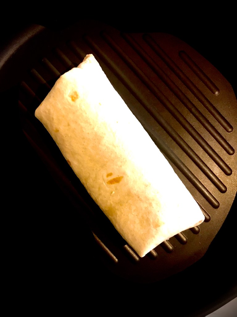 - Once wrapped place a griddle on the stove and heat on medium, once the pan is warm place burrito into the pan and cook either side until gently browned. Alternatively cook in a sandwich press or under a grill.